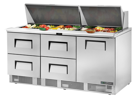 True Refrigeration Prep Table 30x 1/6 Top Pans 4 Drawers + 1 Solid Swing Door - TFP-72-30M-D-4-HC