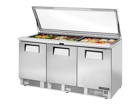 True Refrigeration Glass Lid Prep Table 30x 1/6 Top Pans 3 Solid Swing Doors - TFP-72-30M-FGLID-HC