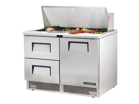 True Refrigeration Prep Table 18x 1/6 Top Pans 2 Drawers + 1 Solid Swing Door - TFP-48-18M-D-2-HC