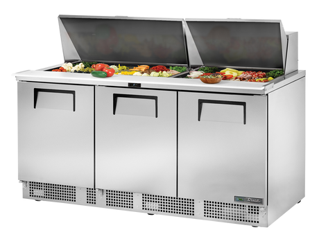 True Refrigeration Prep Table 30x 1/6 Top Pans 3 Solid Swing Doors - TFP-72-30M-HC