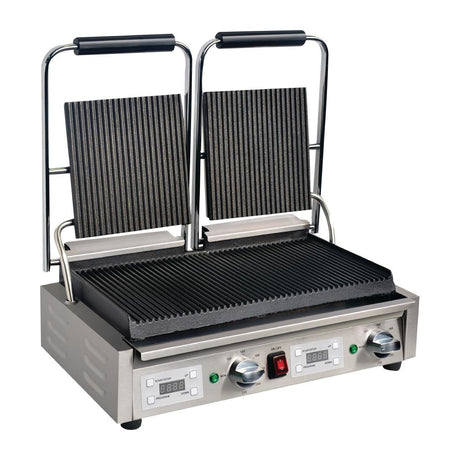 Apuro Double Contact Grill Ribbed Plates with Timer