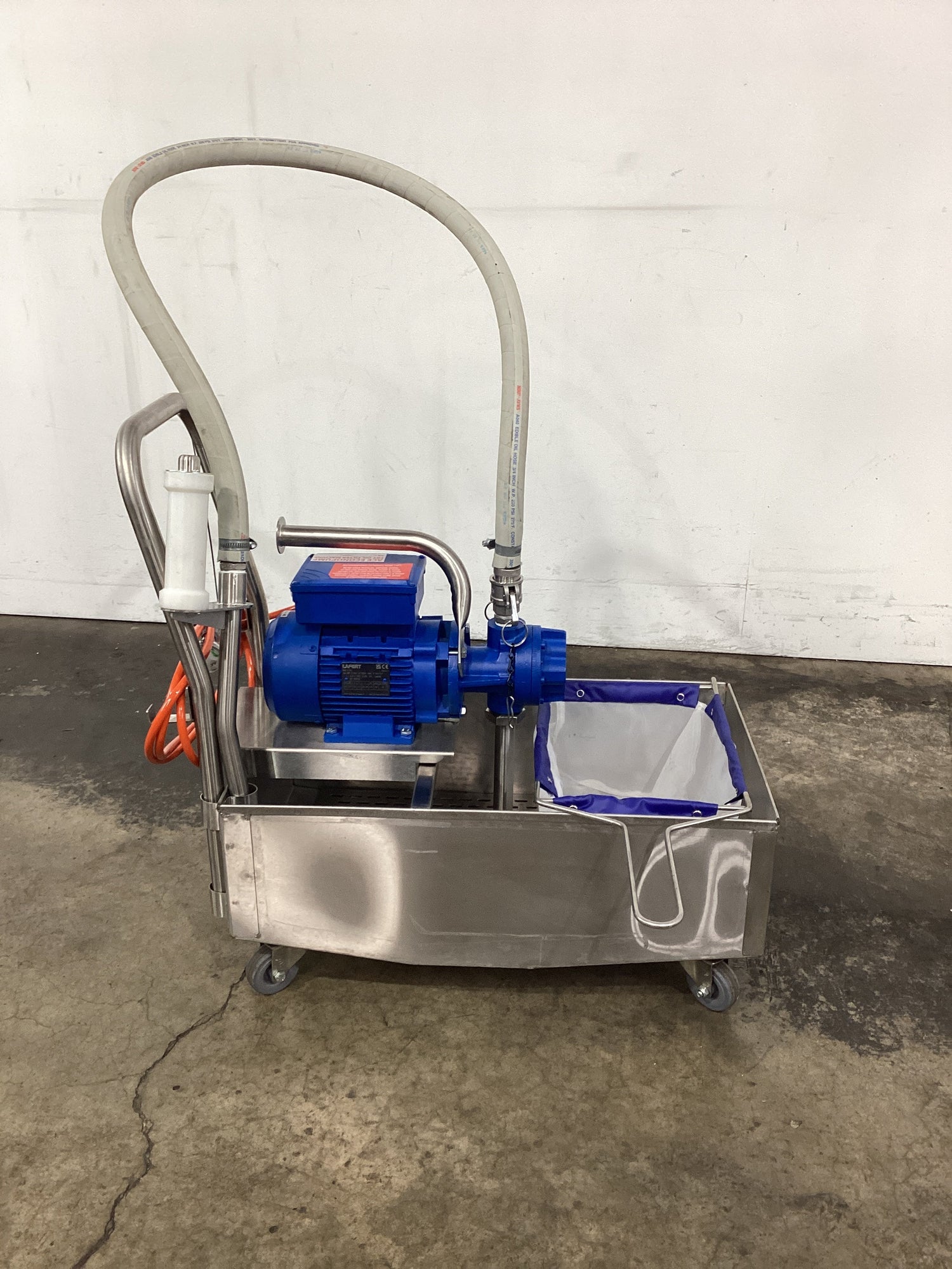 Oil Filter. Features 15 litres/minute (160ºC) 36L filter capacity, Heavy duty ½ horsepower motor (.33kw), On castors, S/S finish, Scratches, 10 amp 1 phase, 620mmW x 670mmD x 950mmH, 25KG