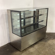 Square Glass Refrigerated Display. Features Square glass, 2 shelves, Internal lighting, 2 rear sliding glass doors, Digital temp controls (2°C - 5°C), On castors, Climate class normal, S/S finish, Scratches & dents, 10 amp 1 phase, 1470mmW x 685mmD x 1345mmH, 242KG