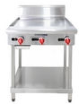 Griddle. Features 3x High-efficiency burners, Heavy-duty griddle plate for even heat distribution, Removable grease drawer, Piezo ignition, LPG