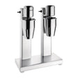 With two mixing heads, the Apuro milkshake mixer lets you save time and energy mixing up your specialities. Simply fill the supplied cups, raise into position, and select a speed - let the Apuro take the strain. As each mixing head is independently controlled and has its own powerful motor, you've got all the flexibility you need.