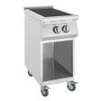 Mounted on a durable stainless steel stand with castors, the unit is easy to reposition and includes an open base shelf for convenient storage. Built for everyday use, this hob combines modern efficiency with robust commercial-grade construction.