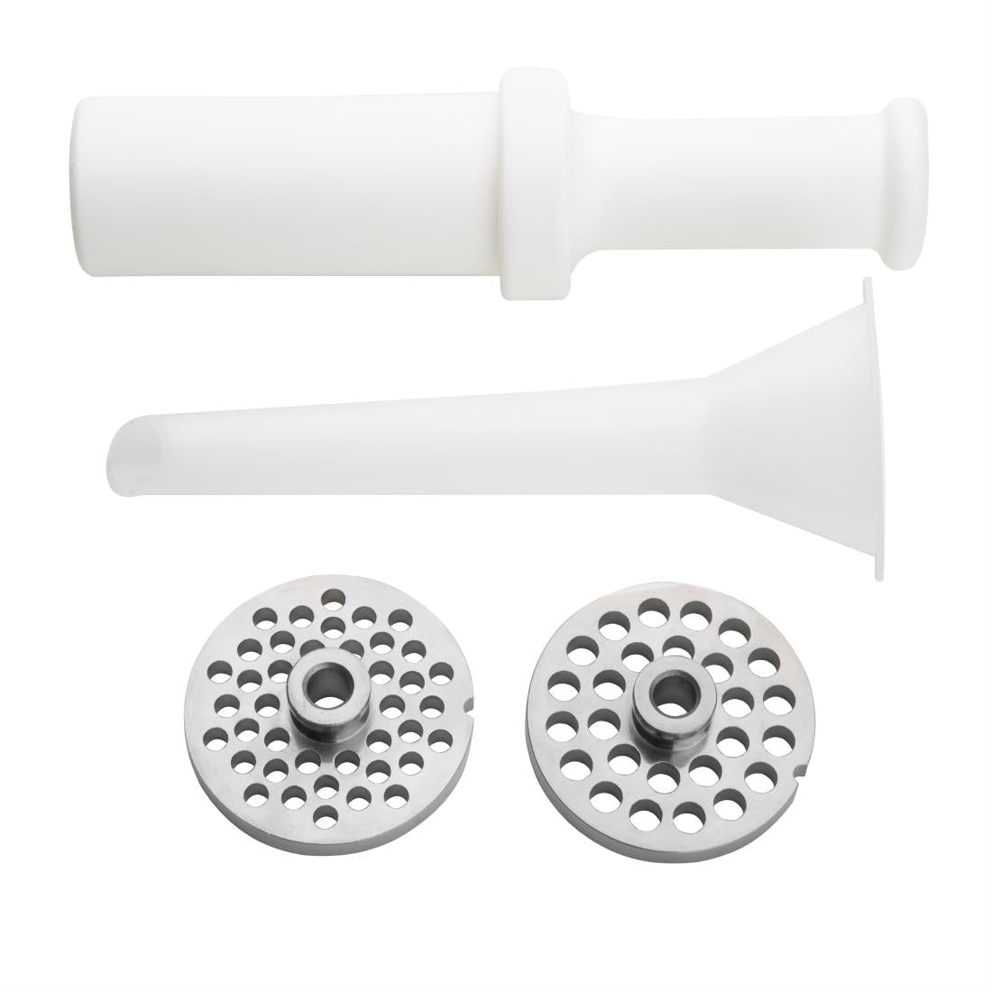 - Included Accessories: Plastic pusher and sausage stuffing tube