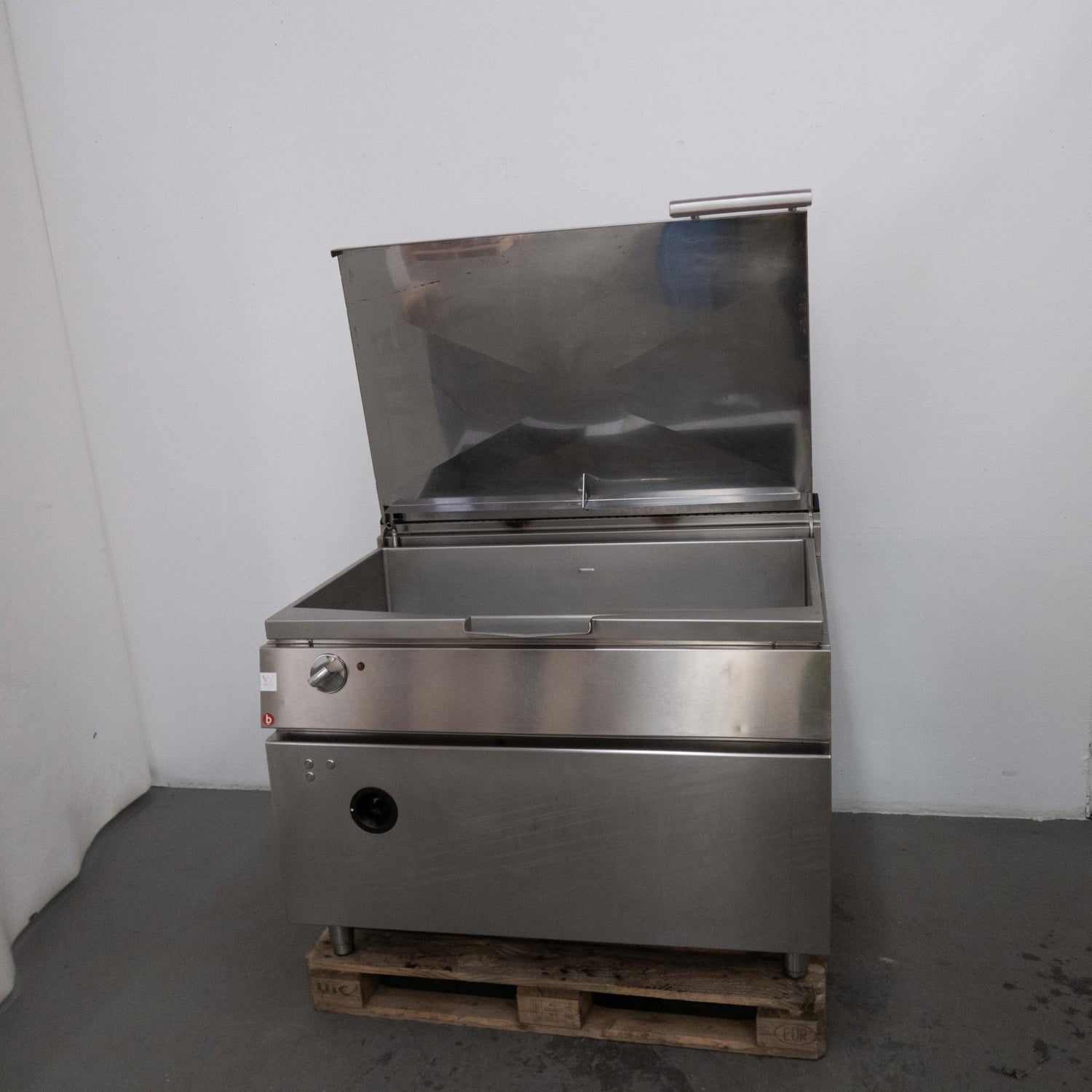 Bratt Pan. Features 120 Litre Capacity, Adjustable feet, Tilting Mechanism: Motorised for ease of use, Piezoelectric ignition, Flame fail valve, S/S finish, Scratches & Dents, Temperature Control: Adjustable from 100°C to 280°C, Thermocouple safety valve, Water Filling: Via solenoid valve, 10 Amp 1 Phase, Natural Gas, 1200mmW x 900mmD x 910mmH, 210KG