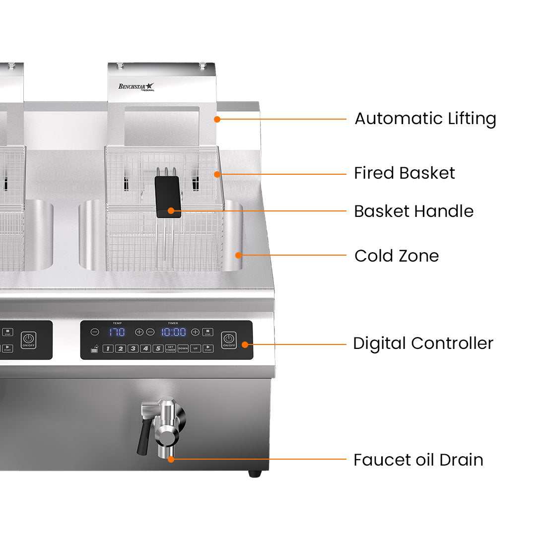 Benchstar Double Tanks Auto Lifting Induction Fryer - IF7000D-AL