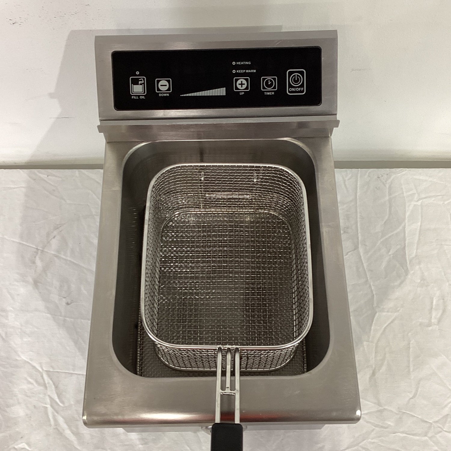 C/Top 1 Pan Fryer. Features Single pan, 1 basket, 8L capacity, Basket holder, Fish plate, Drainage spout, Rubber feet, Night cover, S/S finish, Surface scratches, 15 amp 1 phase, 290mmW x 500mmD x 420mmH, 11KG