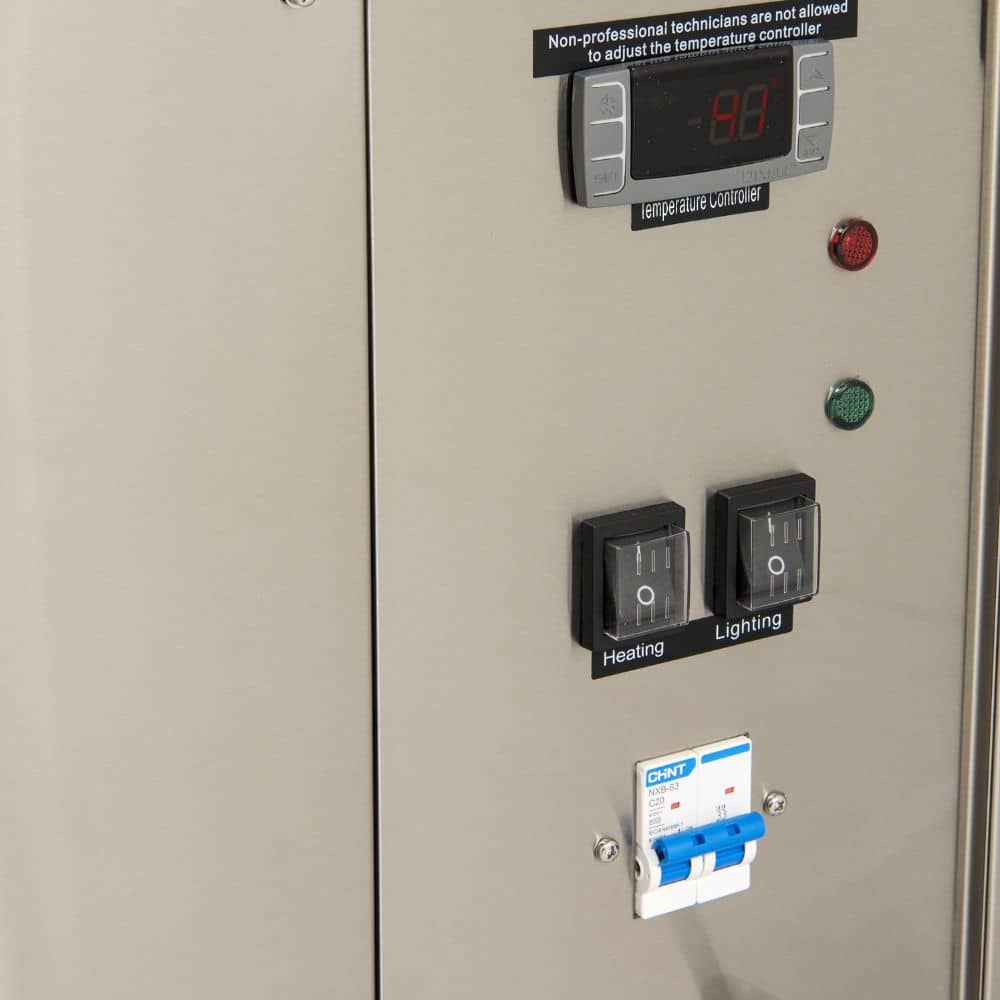 Large display area and 3 adjustable shelves plus base to showcase all your hot delicacies.