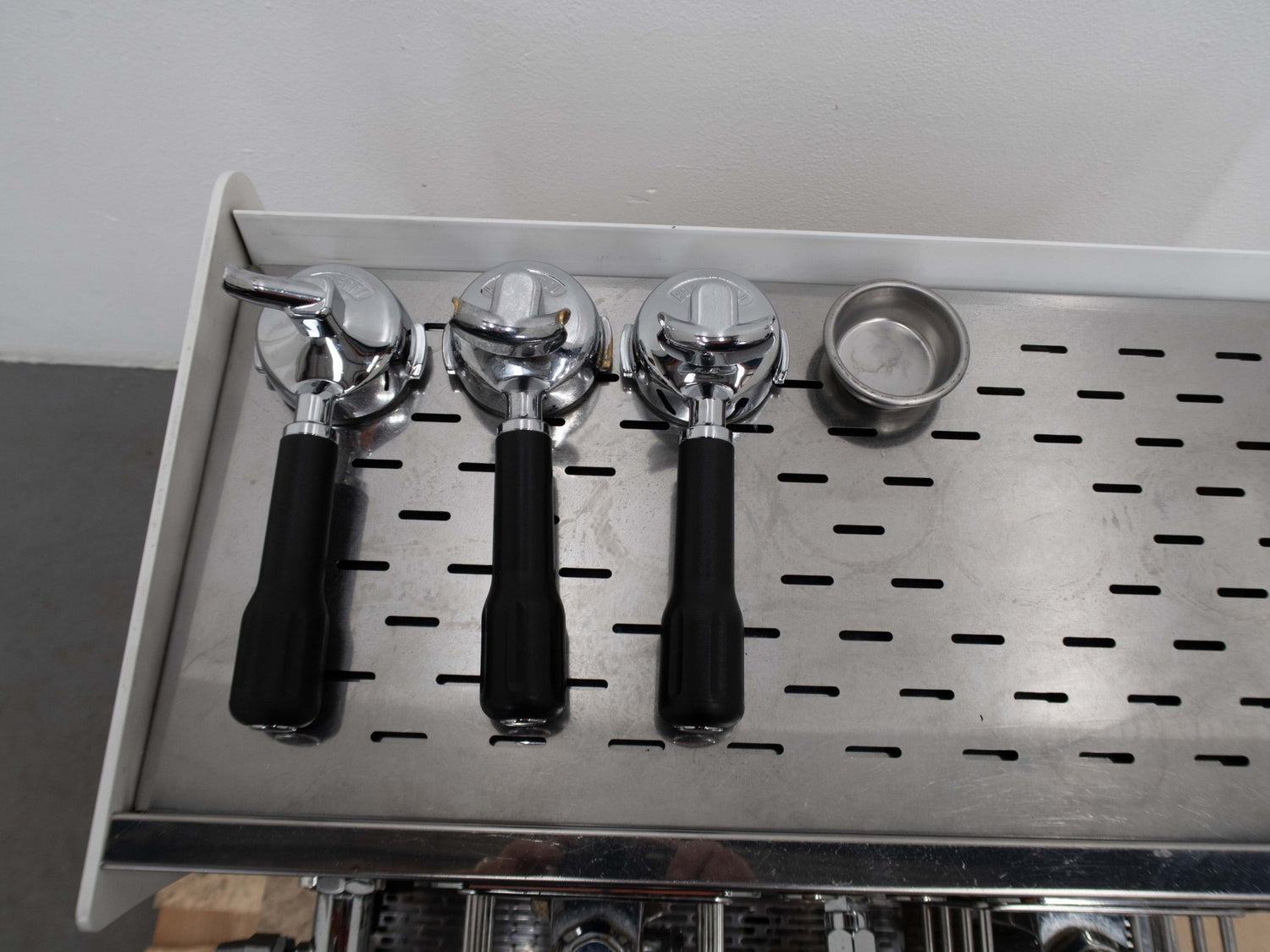 2 Group Volumetric Coffee Machine. Features Single Boiler, Shot Timer, Cup Warming Rack, 1 Single & 2 Double Group Handles, Blind Filter Cap, White Finish, Scratches & Dents, Manual Push-Button Control, Dual Steam Wands, Hot Water Tap, 680mmW x 560mmD x 490mmH. 60KG. 20 Amp, 1 Phase.
