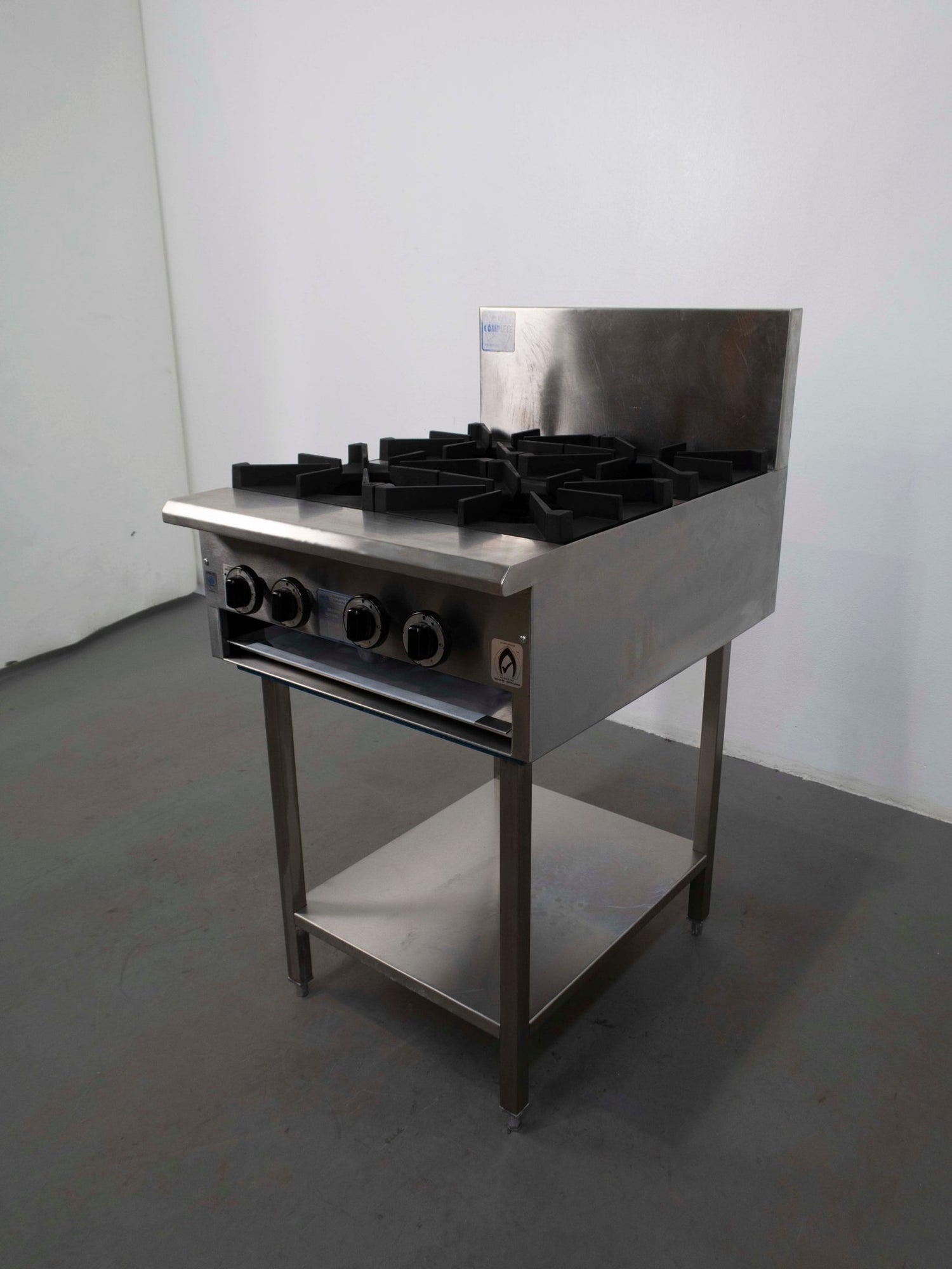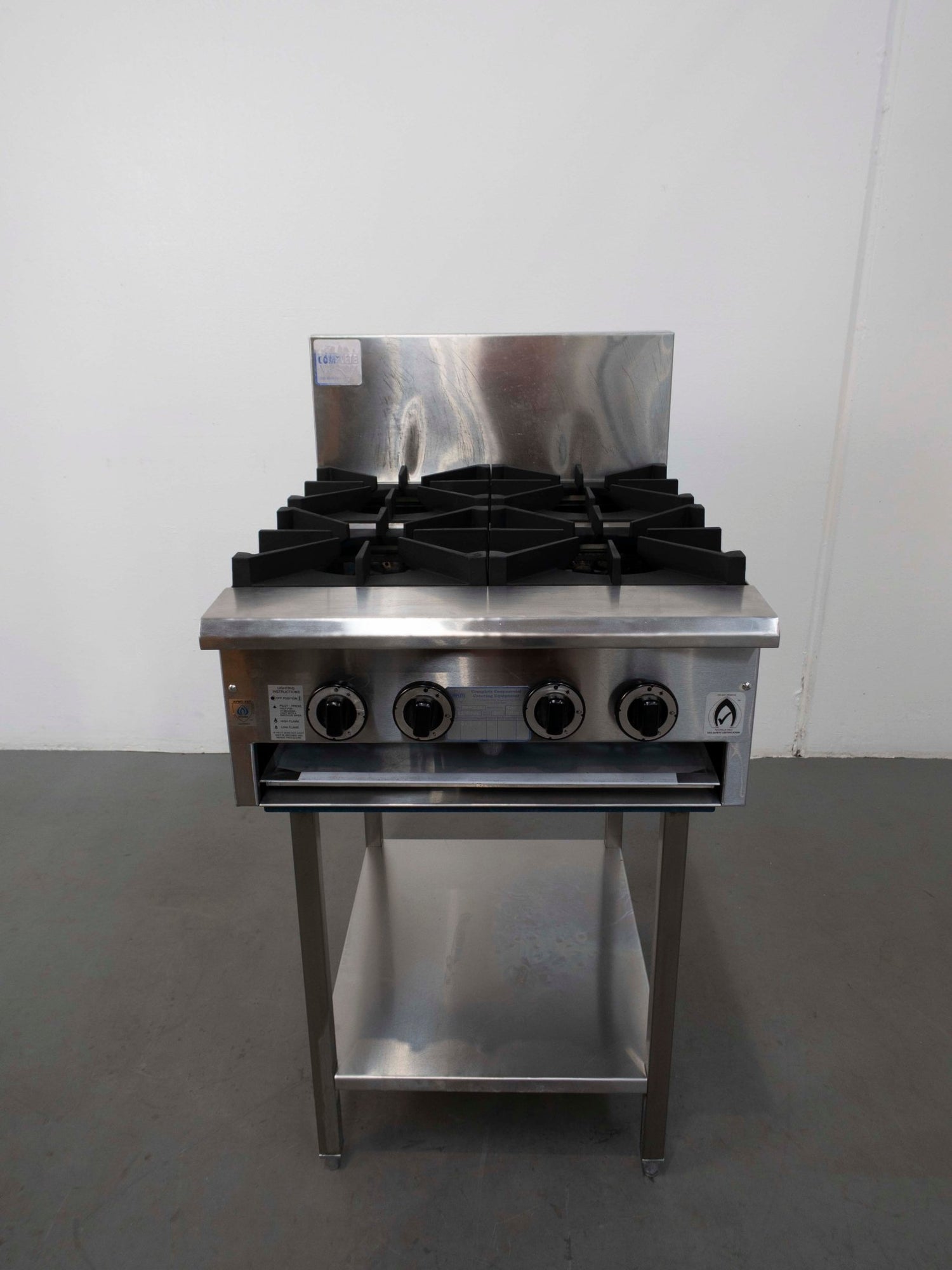 Cooktop. Features 4 Burner Cooktop, 1 x Drip tray, Adjustable feet, Mid shelf, Pilot and Flame failure to all Burner, Non Clog Burner, Stainless steel exterior, S/S Finish, Scratches & Dents, 80Mj/hr, Cast Iron trivets, Natural Gas,620mmW x 800mmD x 1160mmH, 70KG