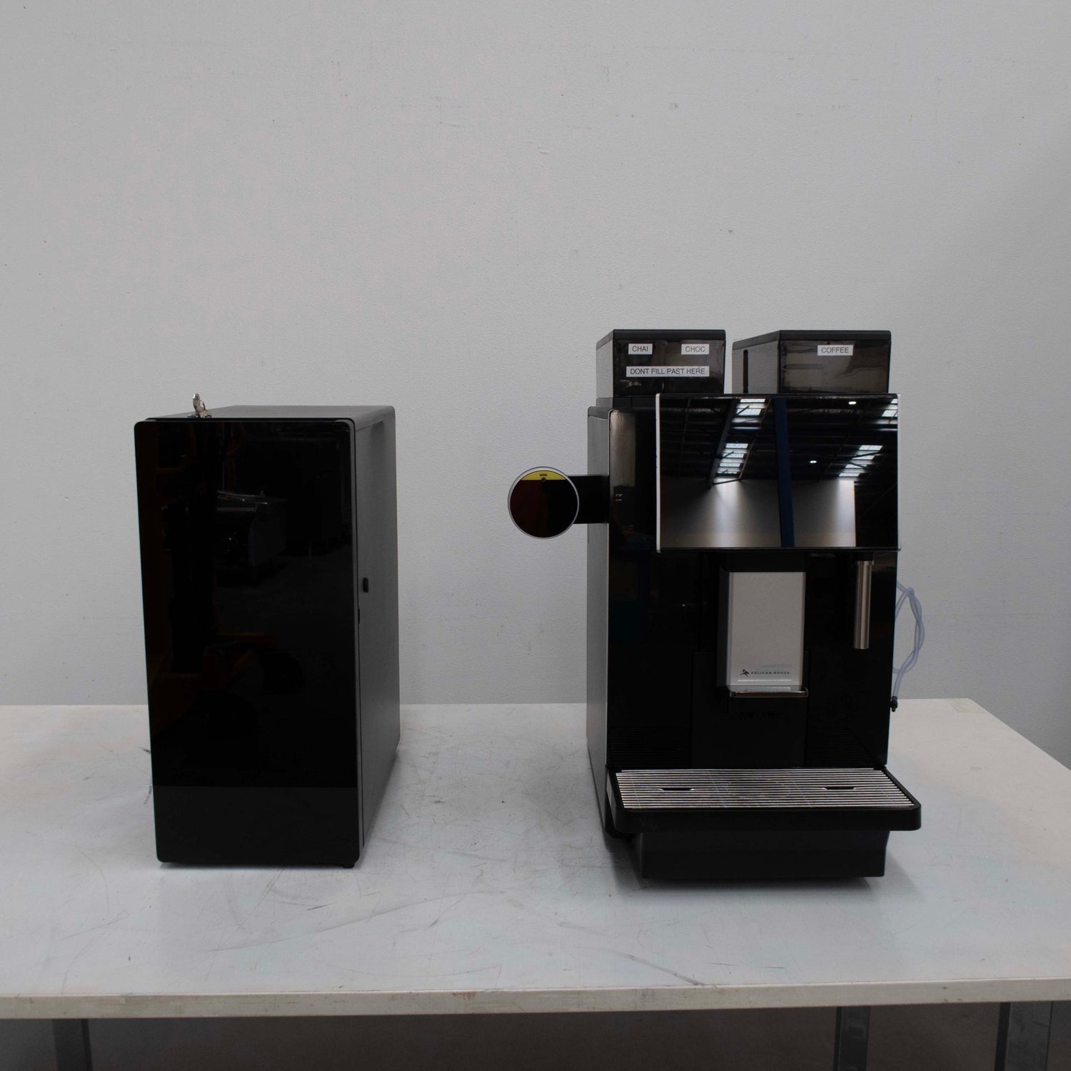 Automatic Coffee Machine. Features 200 cups per day, Fully Automatic functioning, 1200g Bean Hopper, 7inch Touch Screen, 4L Water Tank, Steam wand, Milk cooler capacity 10L, Black, Scratches & Dents, 1-9 Level grinding grades, Tap water supply, Hot water wand, 700mmW x 945mmD x 630mmH. 40KG. 15 Amp, 1 Phase.