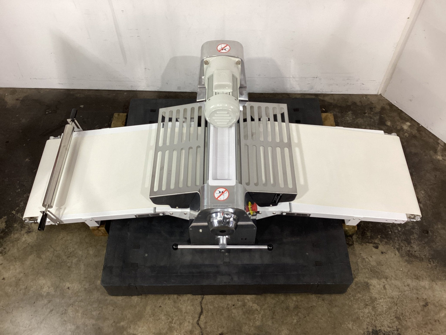 Dough Sheeter. Features 5kg dough weight capacity, large roller opening (40mm), safety guards with internal safety switching, Rubber feet, White & S/S finish, Brand new, 10 amp 1 phase, 2080mmW x 880mmD x 620mmH, 150KG