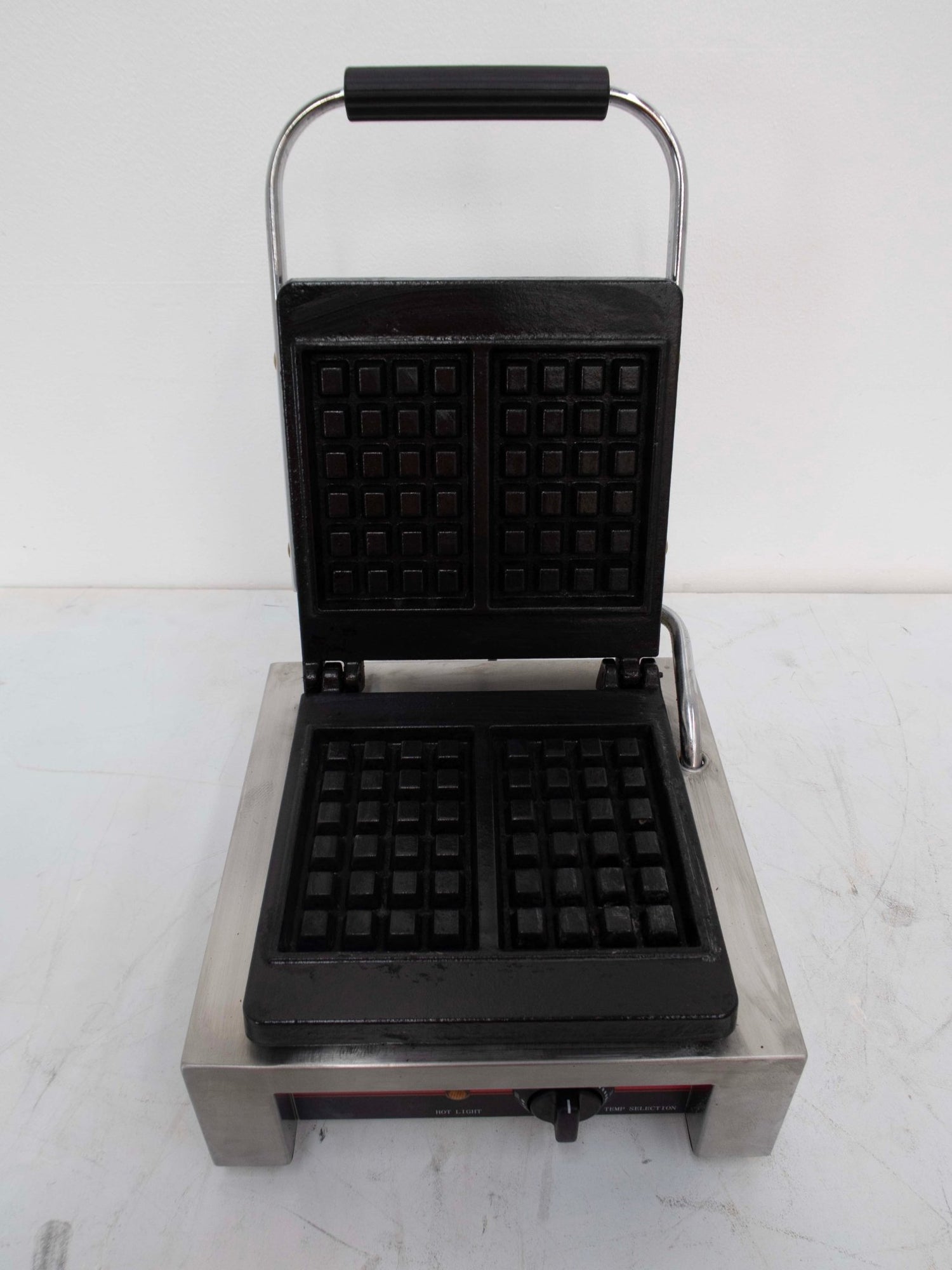 Waffle Maker. Features Variable heat control and a removable grease tray, Makes two waffles (10×16 cm each) per batch, S/S Finish, Scratches & Dents, Cast iron plates for excellent heat retention, Counter-balanced top plate for even pressure, 10 Amp 1 Phase, 320mmW x 440mmD x 230mmH, 18KG