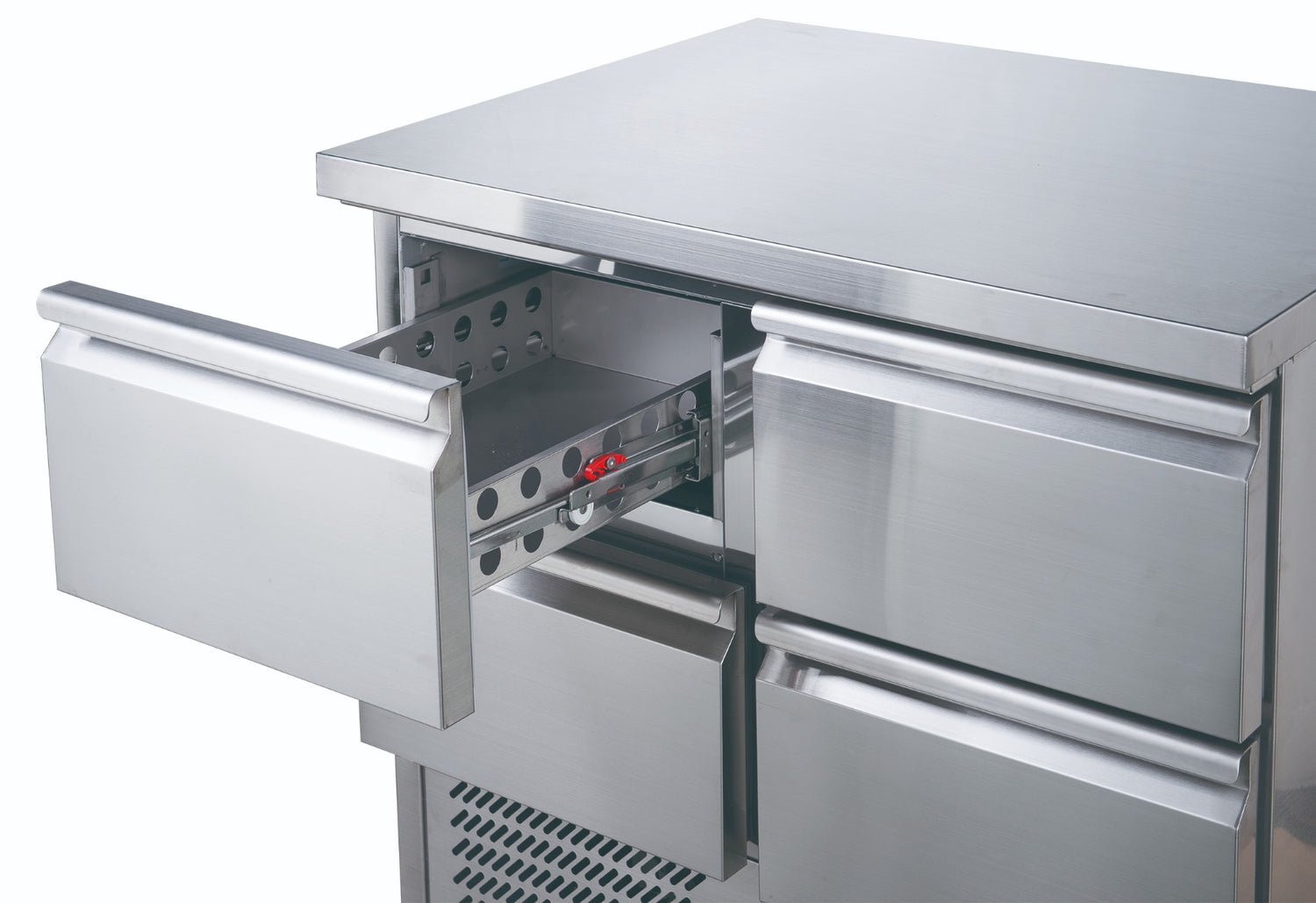 The heavy duty magnetic door seals are designed to ensure optimal cooling. Constructed using durable and easy-to-clean stainless steel inside and out. The internal area features rounded corners, making it super easy to clean this compact unit. This unit is GN pan compatible, comes with a single shelf but you can opt for additional slides so you Gn pans just slide in and out.