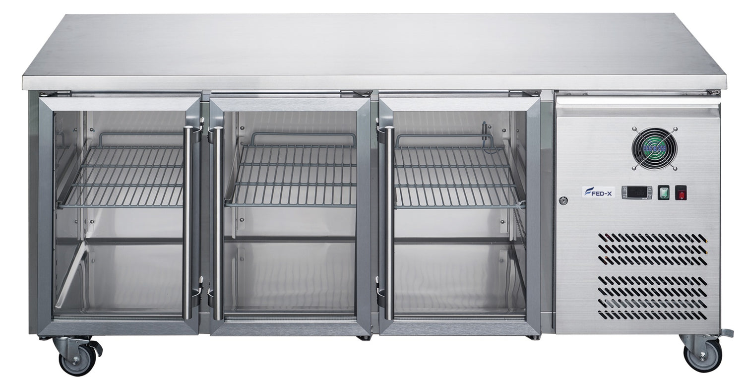 FED-X Three Glass Door Bench Fridge Stainless Steel - XUB6C18G3V