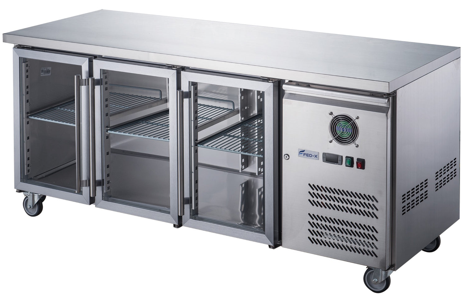 FED-X Three Glass Door Bench Fridge Stainless Steel - XUB7C18G3V