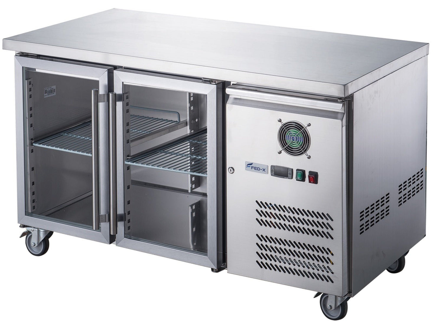 FED-X Two Glass Door Bench Fridge Stainless Steel - XUB6C13G2V