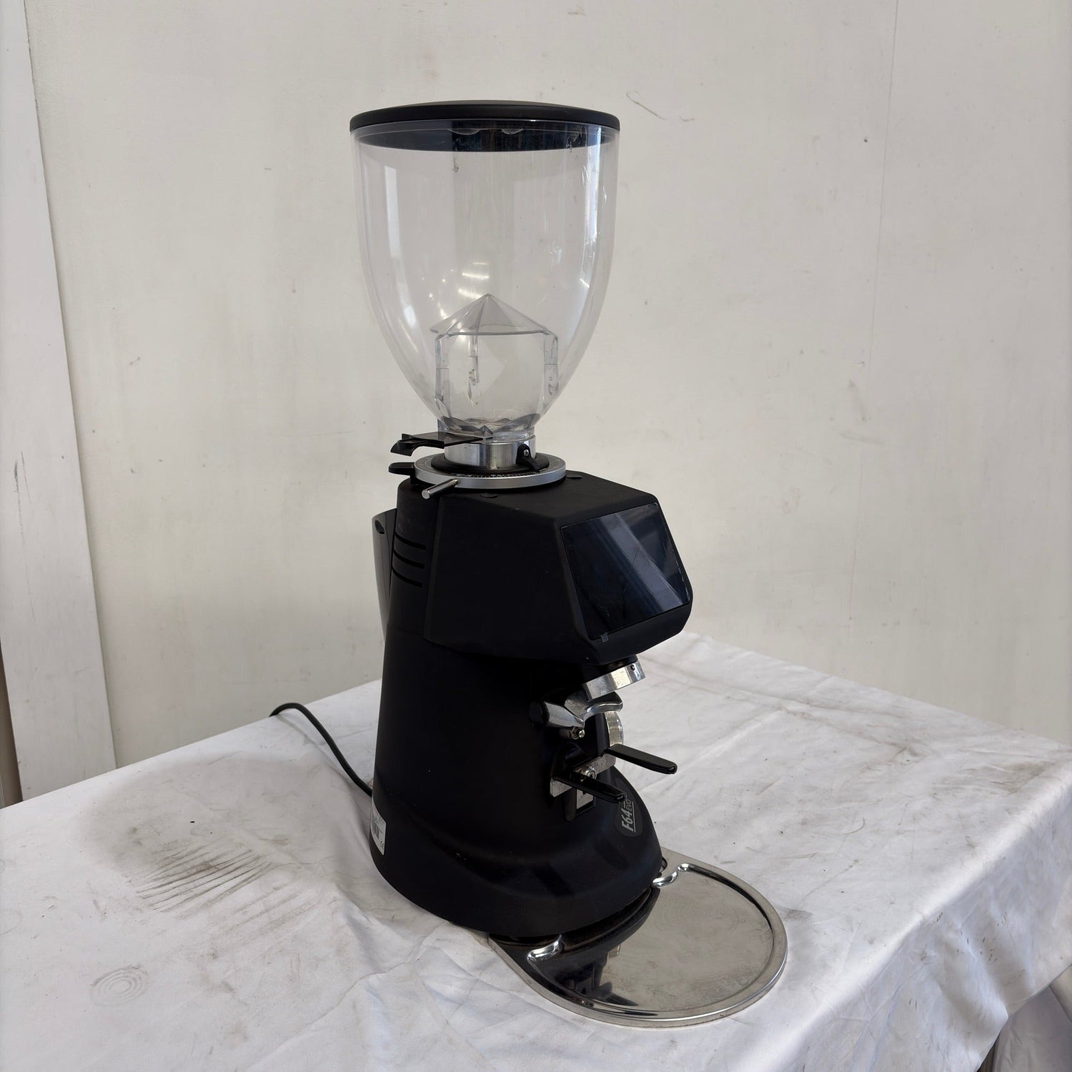 Electronic Coffee Grinder. Features Electronic Dosing, Counter, Thickness Adjuster, Drip Tray, Automatic cooling fan, Black Finish, Scratches & Dents, 64 mm flat burrs, Micrometric (stepless) grind adjustment, 10 Amp 1 Phase, 220mmW x 400mmD x 610mmH, 13KG