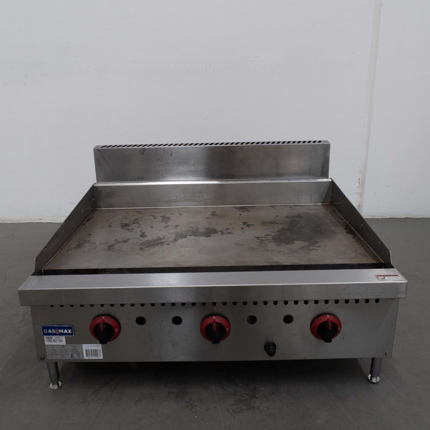 Griddle. Features Grease through the channel at the front, Stainless steel oil collector at the bottom, Flame fail valve, On feet, On counter, Durable brass control valve, S/S Finish, Scratches & Dents, 90Mj/hr, 22mm heavy-duty mild steel plate, Stainless Steel Splashback, Natural Gas,915mmW x 750mmD x 540mmH, 110KG