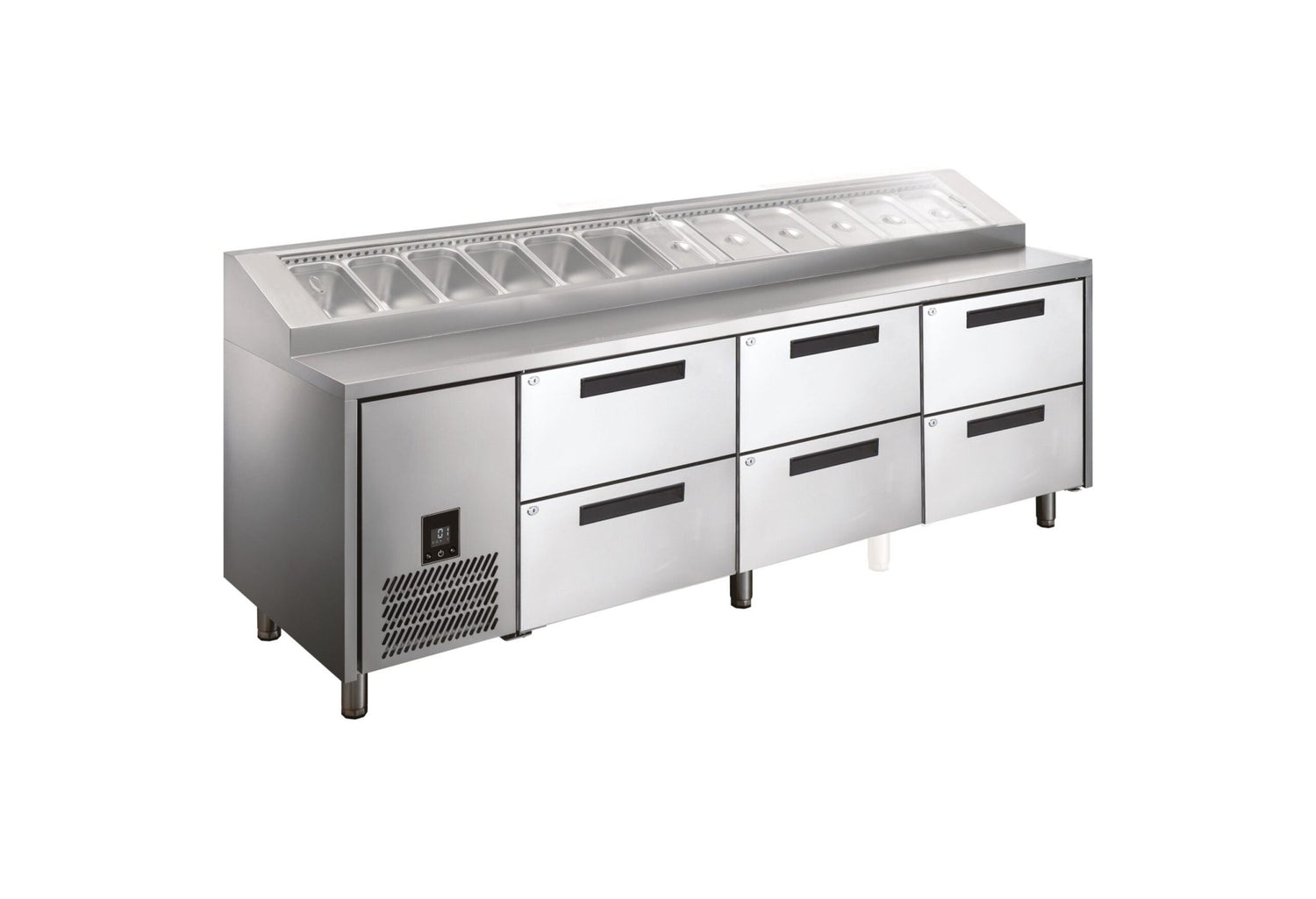 - Efficient Ingredient Storage: Three sets of robust drawers offer organised, cold storage for ingredients, significantly enhancing kitchen workflow and accessibility.