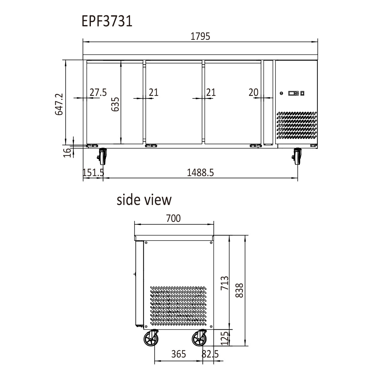 - Dimensions (W x D x H): 1795.0 mm x 700.0 mm x 838.0 mm