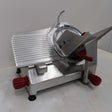 Meat Slicer. Features Belt Driven, Gravity Feed, 300mm Blade Width, Slice Thickness: Adjustable from 0 to 14 mm, Built In Sharpener, Rubber feet, S/S finish, Scratches & Dents, 10 amp 1 phase, 640mmW x 420mmD x 445mmH, 35KG