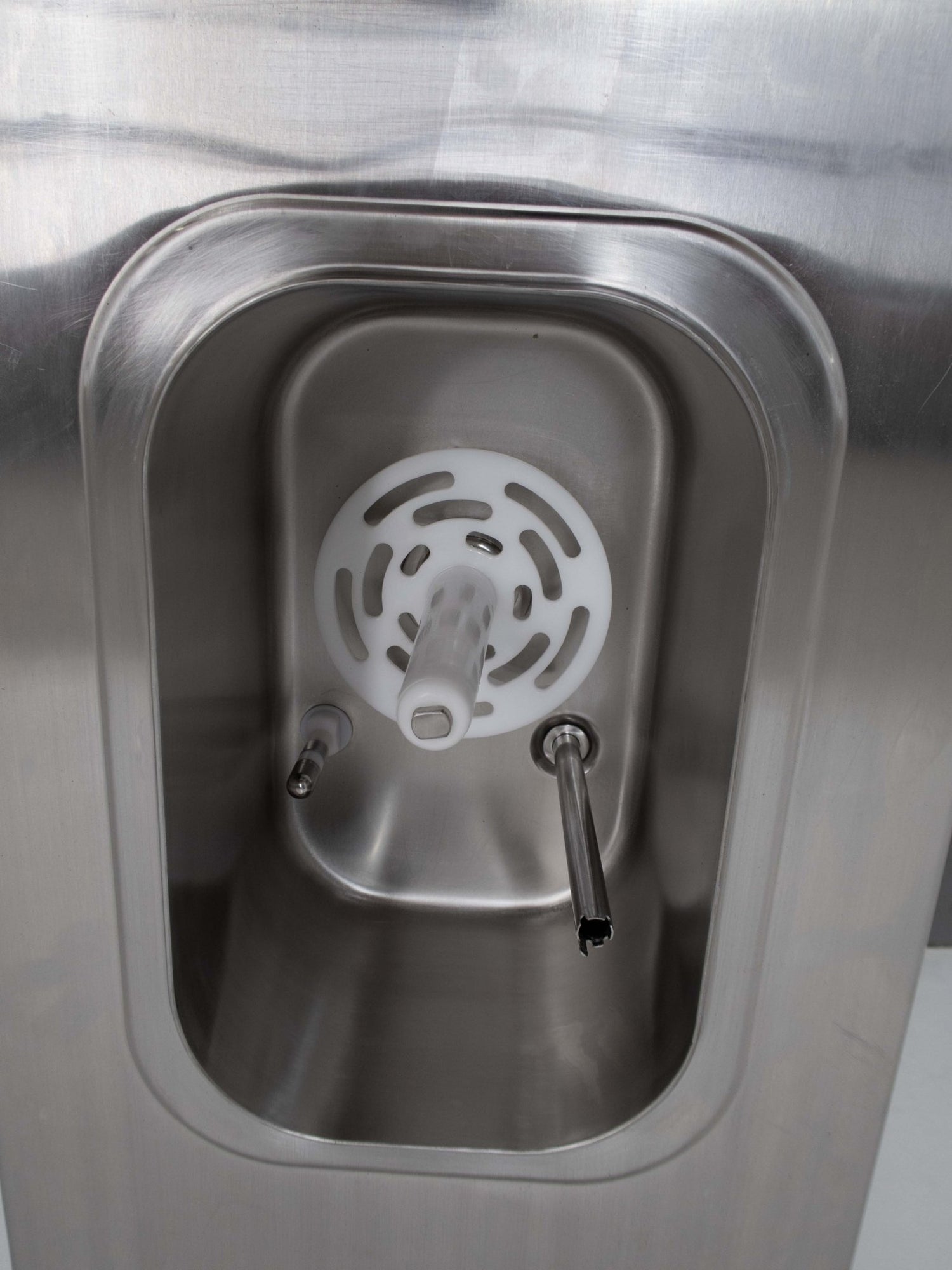 Ice Cream Machine. Features 40 Lt Per Hour Production, 1 x Pan, 9.5 Lt Pan, Gravity Feed, On Feet, Climate Class Normal, S/S finish, Scratches & Dents, Single Flavour Output, Turbo Freezing Technology: Ready to serve in 6–8 minutes, Intelligent Controller: LCD interface with fault detection and cleaning mode, 10 Amp 1 Phase, 385mmW x 800mmD x 750mmH, 110KG