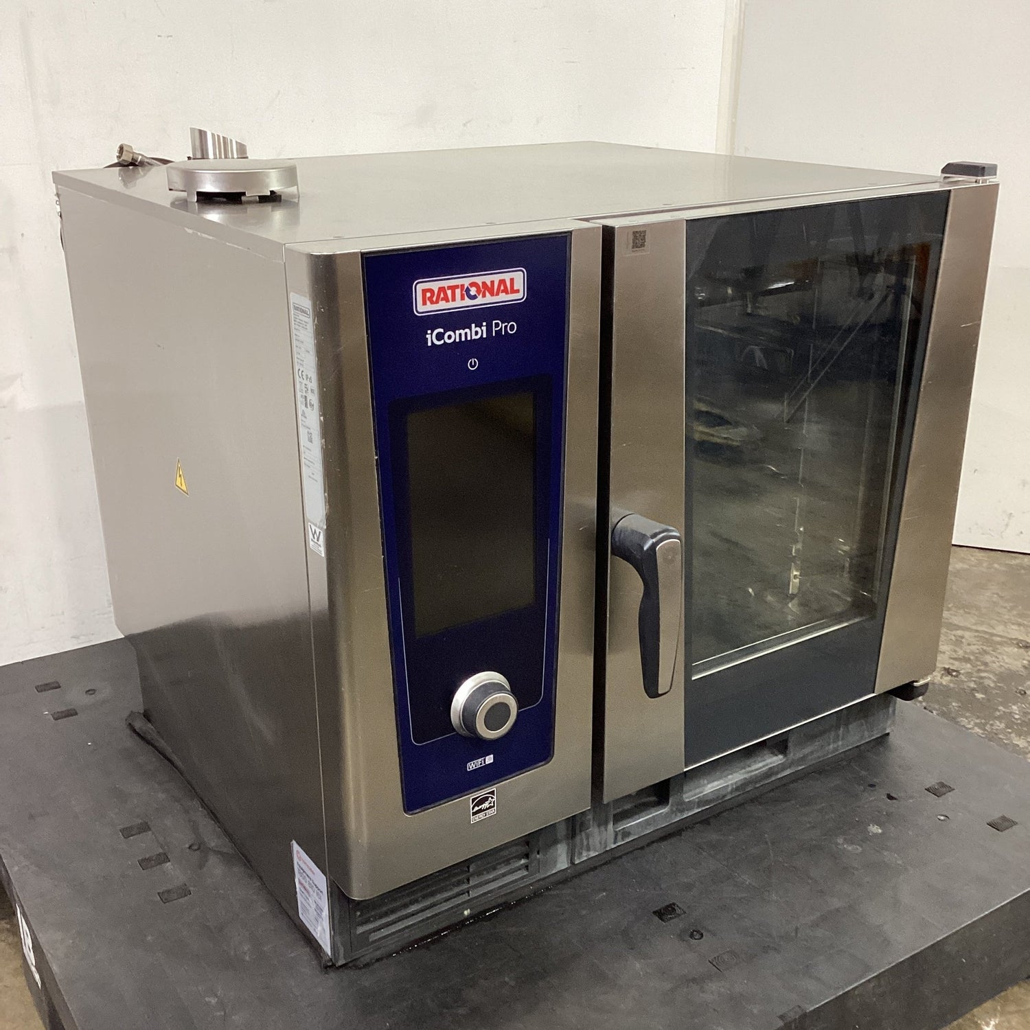 Combi Oven. Features 6 Tray Capacity, No Trays Included, Touch screen controls, Self cleaning, Door opens to RHS, S/S finish, Scratches & dents, 20 amp 3 phase hard wired, 875mmW x 810mmD x 800mmH, 117KG