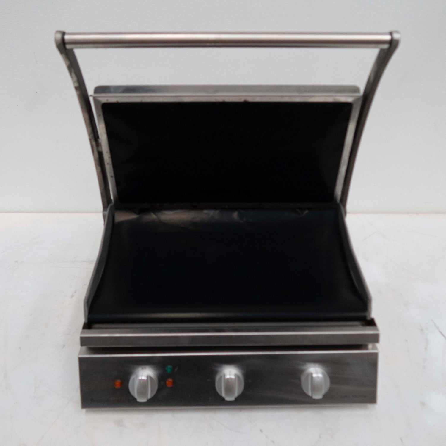 Contact Grill. Features Flat Plates, Timer, Top & Bottom Heating, Rubber feet, Option for top?only or dual?plate cooking, S/S finish, Scratches & Dents, Capacity 8?slice, Counter?balanced top plate, Arched handle for one?hand operation, 10 amp 1 phase, 560mmW x 485mmD x 230mmH, 23KG