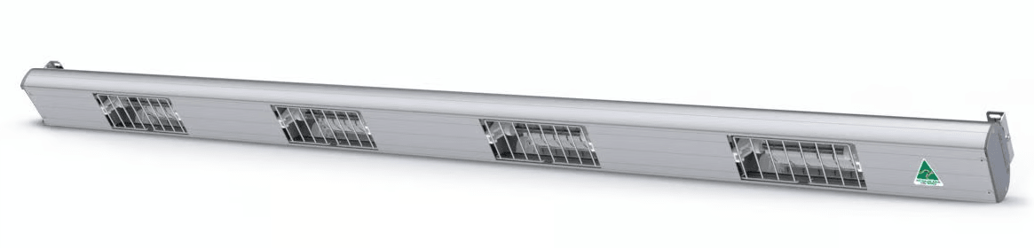 Heat Lamp. Features Easy Fit globes, Designed to give balance of heat + light, Metal lamp guard, No control box, Single phase hardwired
