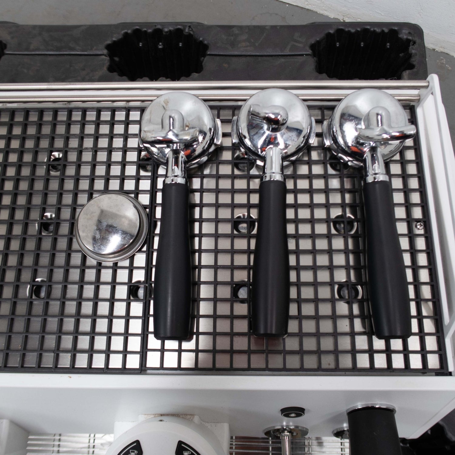 2 Group Coffee Machine. Features Single boiler, 1 single & 2 double group handles, Blind filter cap, Colour LCD display, Individually adjustable temperature for each group head, White Finish, Scratches & Dents, Stainless steel boiler, Up to 7 programmable doses, Programmable boiler temperature, 815mmW x 600mmD x 510mmH. 85KG. 20 Amp, 1 Phase.