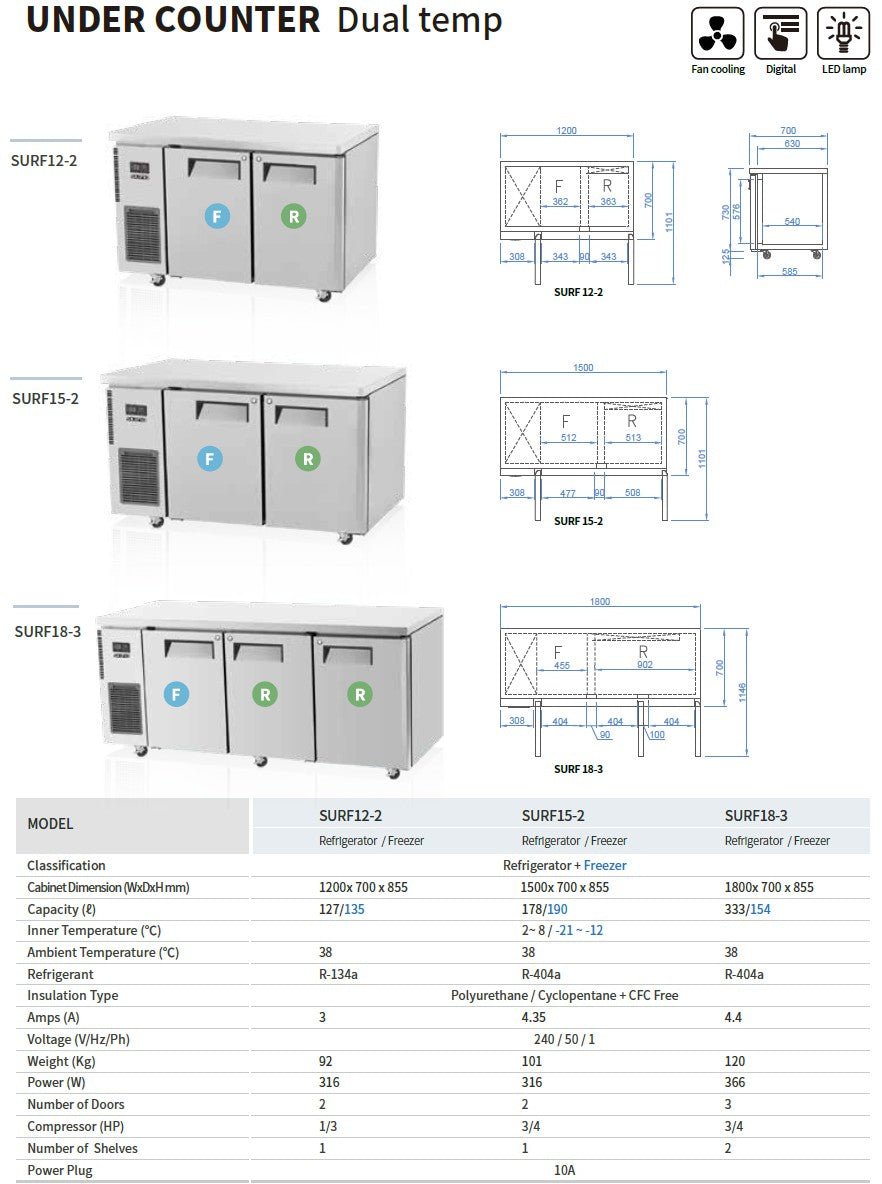- Model: UNDERCOUNTER - DUAL TEMP REFRIGERATOR / FREEZER SURF12-2