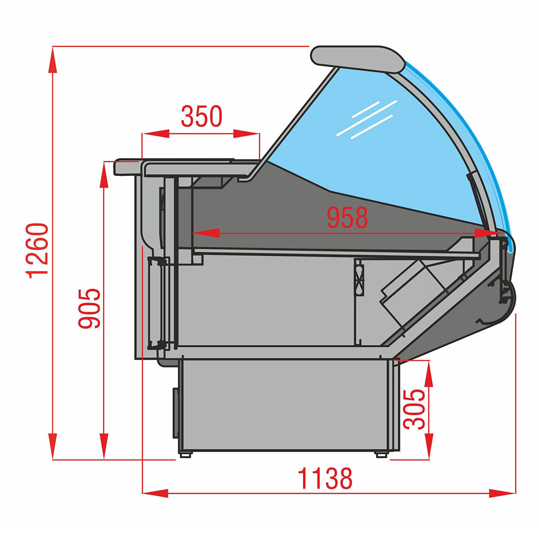 Tecnodom Curved Front Glass Deli Display 2020x1140x1260 PAN2000