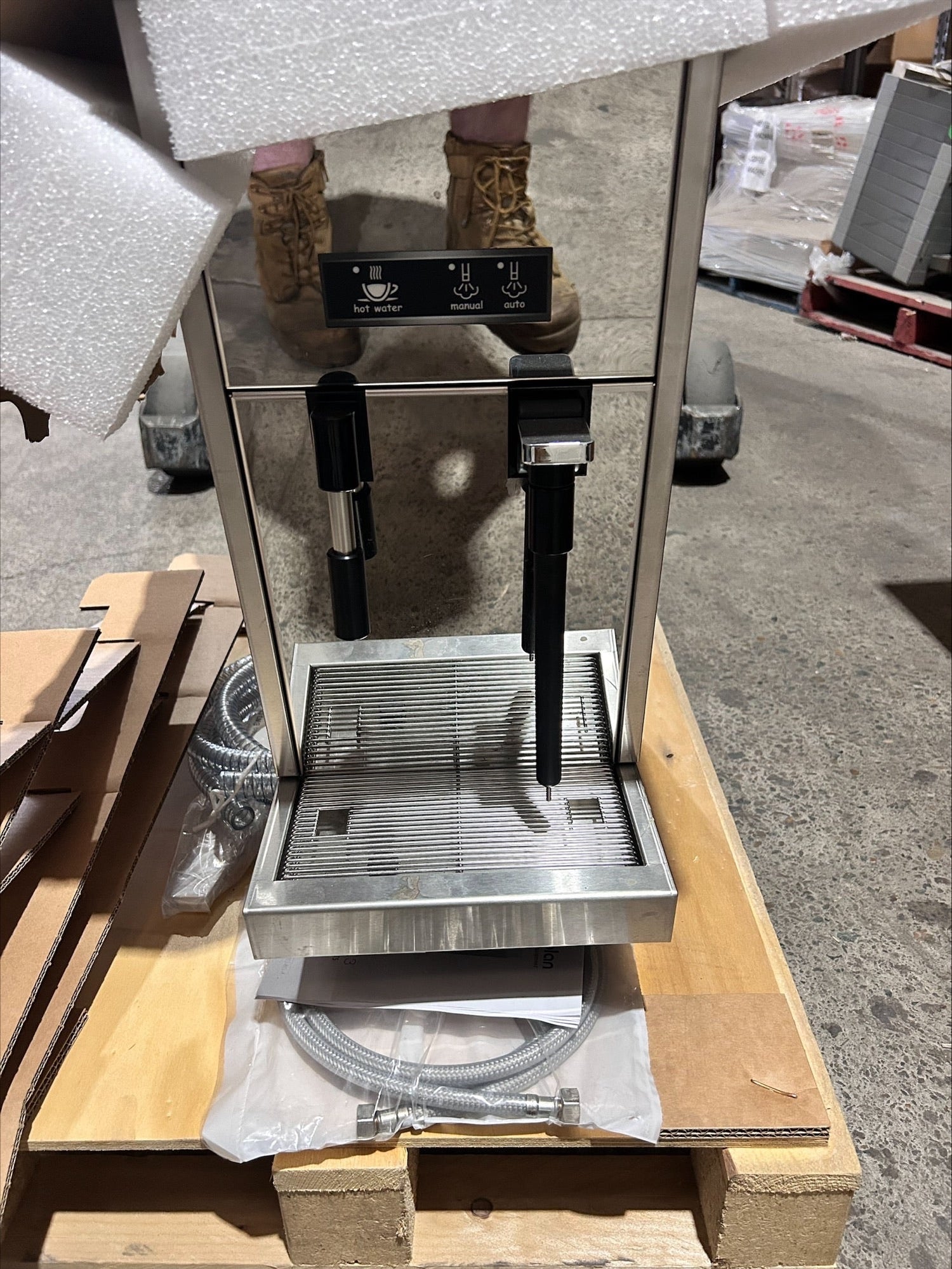 Hot Water Dispenser. Features Up to 34L hot water + unlimited steam, Push button operation of hot water or steam is dispensed by pre-selected amount of manually, Single phase