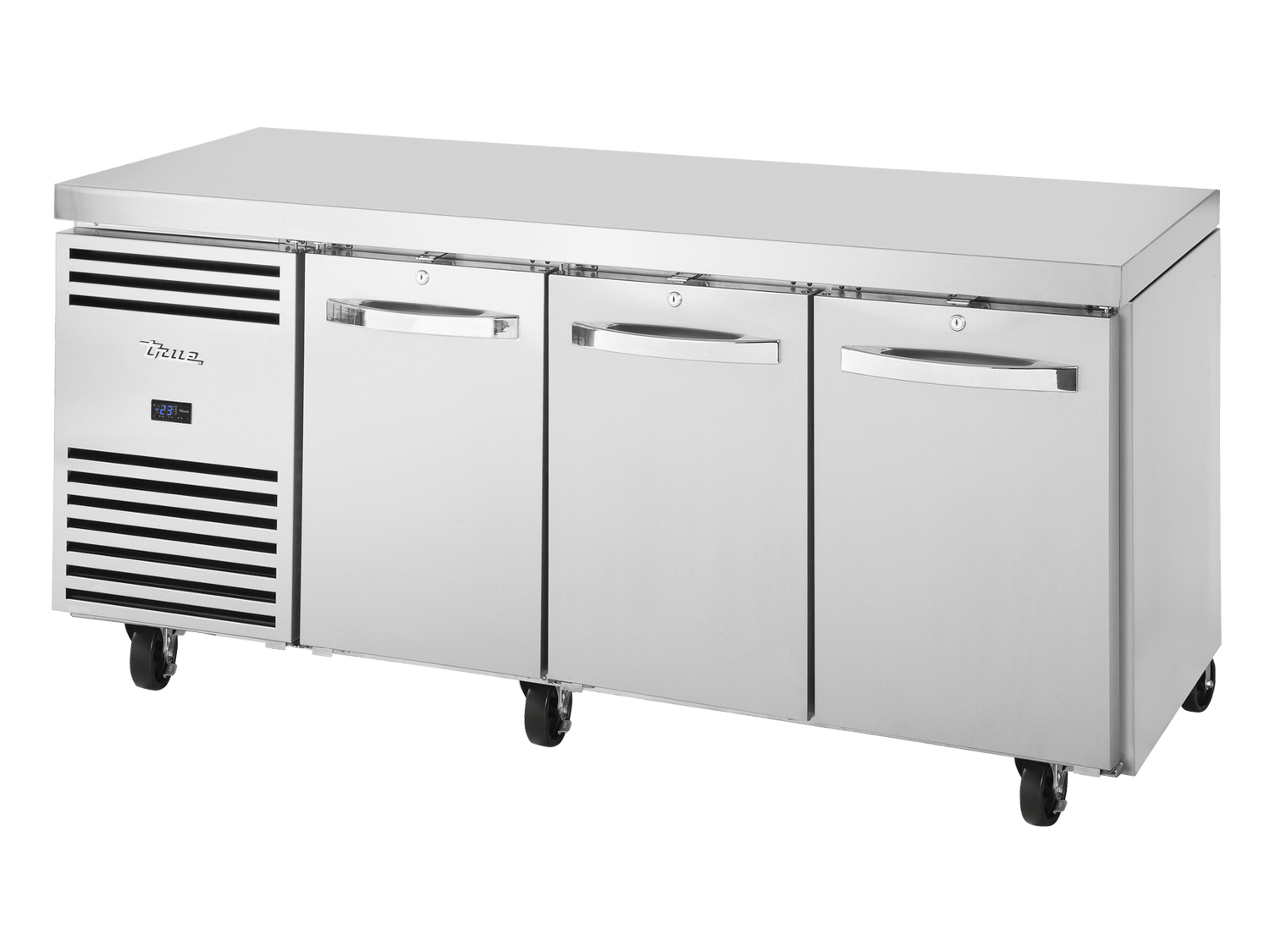 Optimise kitchen workflow and maximise valuable counter space with the True Refrigeration TCF1/3-CL-SS-DL-DR-DR 1/1 GN Counter Freezer. This heavy-duty, three-section unit provides reliable, accessible frozen storage directly within your food preparation zone.