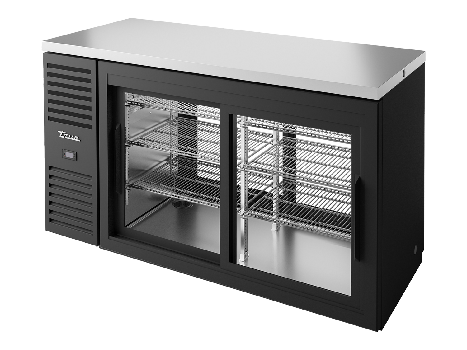 True Refrigeration Pass-Thru Bar Refrigerator Black Ext 2 Glass Slide Doors Front 2 Glass Slide Doors Rear - TBR60-PTSZ1-L-B-11-11-2