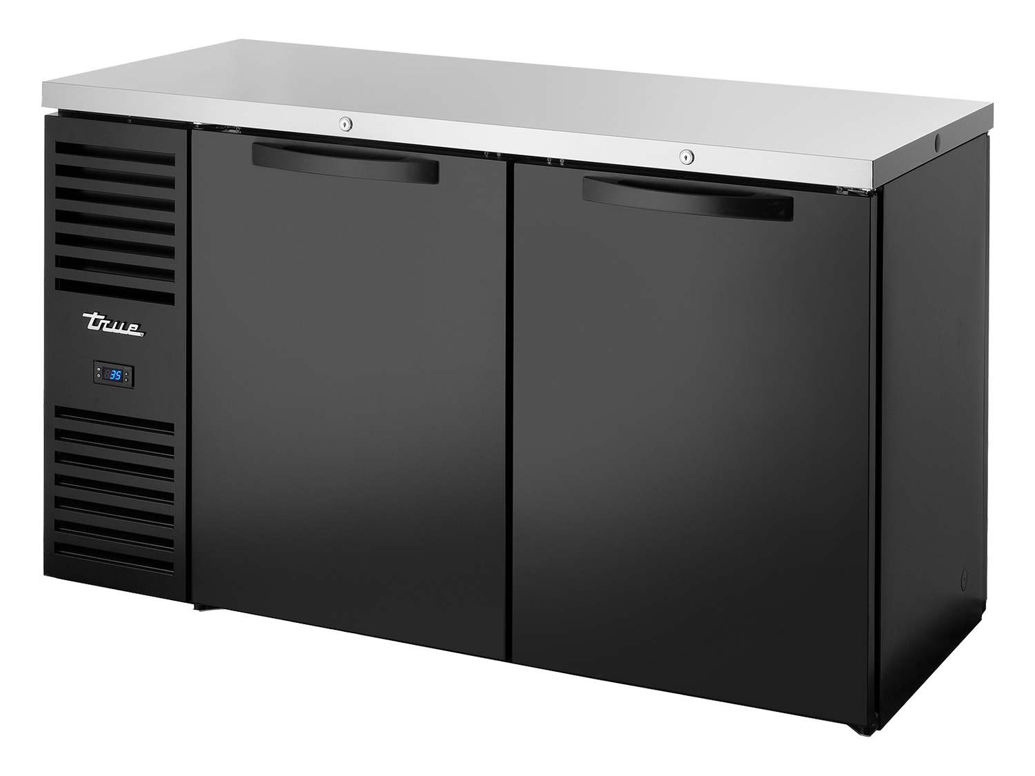 True Refrigeration Pass-Thru Bar Refrigerator Black Ext 2 Solid Swing Doors Front 2 Solid Swing Doors Rear - TBR60-PTSZ1-L-B-SS-SS-2