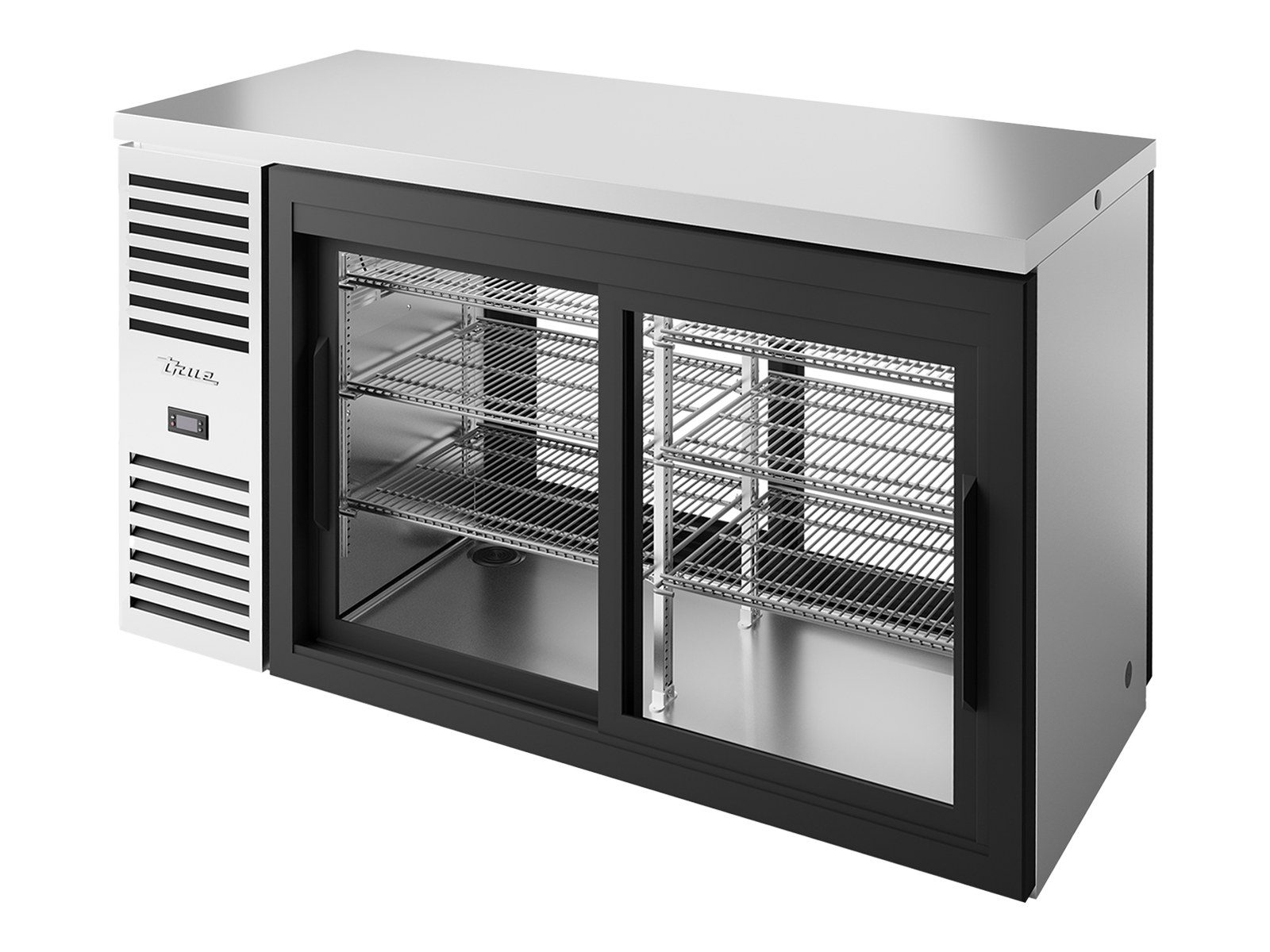 - Product Name: True Refrigeration Pass-Thru Bar Refrigerator Stainless Steel Ext 2 Glass Slide Doors Front 2 Glass Slide Doors Rear
