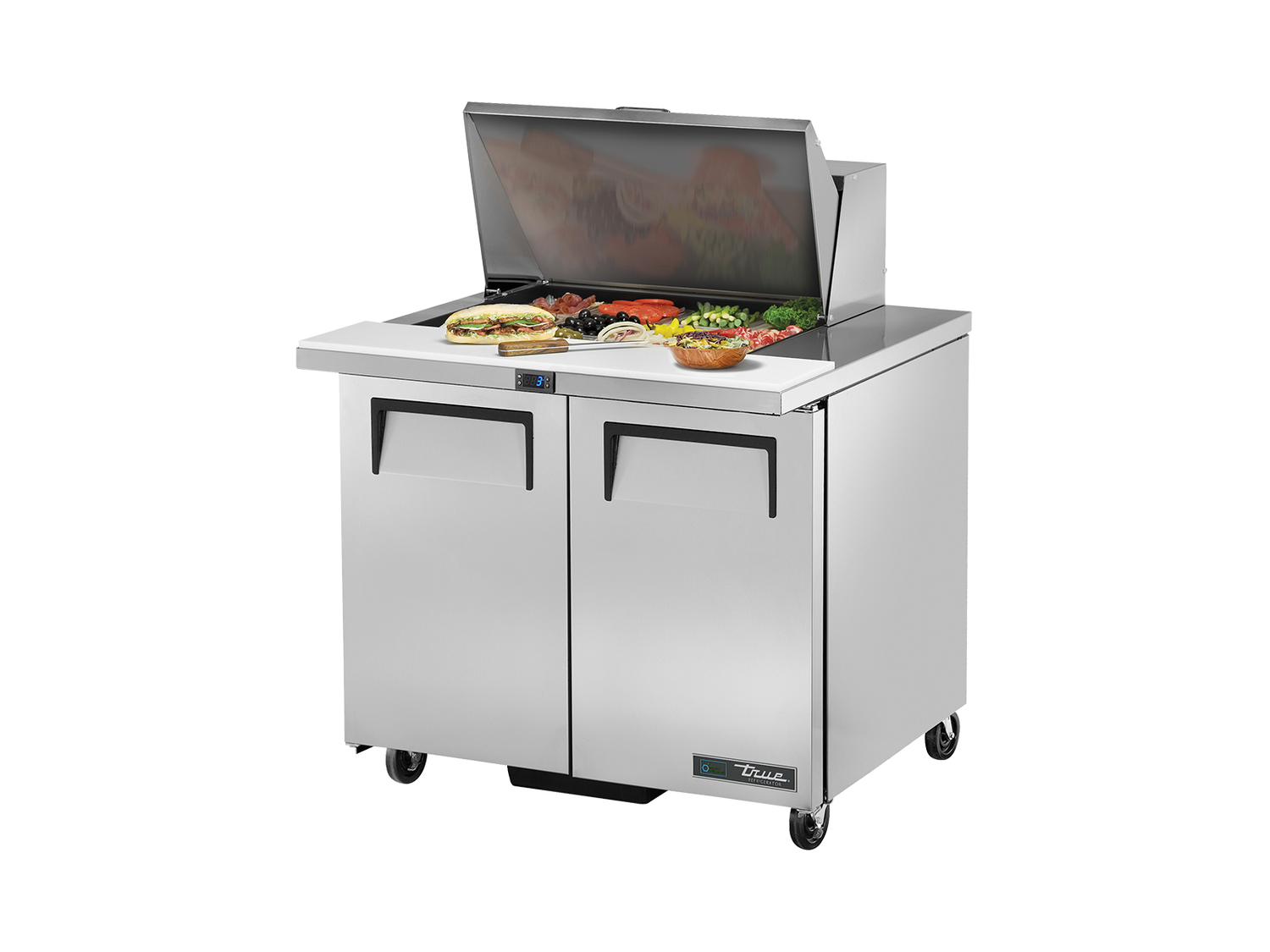 - Product Name: True Refrigeration Prep Table 12x 1/6 Top Pans 2 Solid Swing Doors