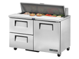 Optimise your kitchen's workflow with the True Refrigeration TSSU-48-12D-2-HC Two-Drawer Sandwich/Salad Unit, a robust and efficient under-counter asset designed for high-volume food preparation and organised ingredient storage in commercial settings.