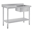 Engineered for high-volume commercial kitchens, the Vogue Single Bowl Sink with Left Hand Drainer provides a durable and efficient solution for dishwashing and food preparation.