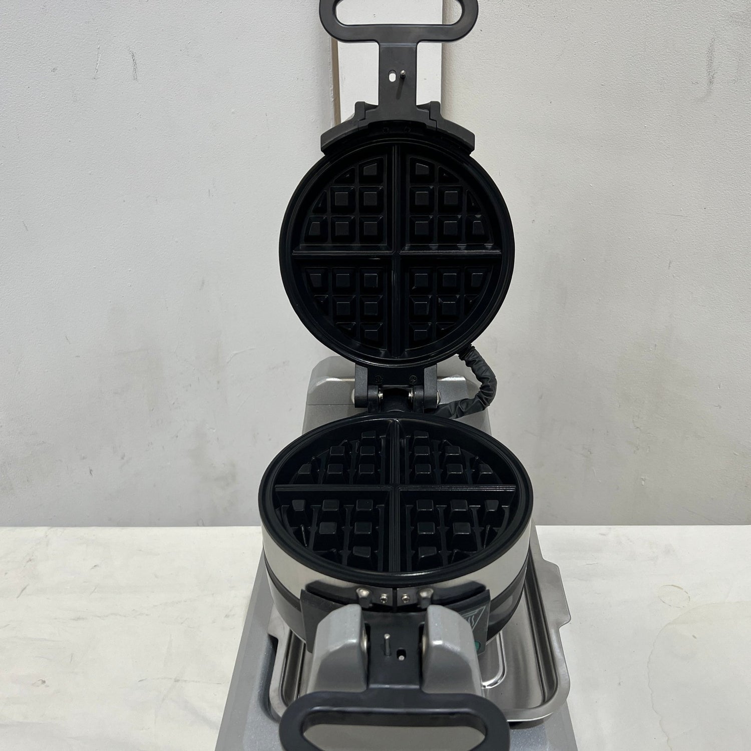 Waffle Maker. Features Embedded heating elements for precise temperature control, Independent LED indicators for 'Power' and 'Ready', Drip pan, Double electric waffle maker, S/S Finish, Scratches & Dents, Material Die-cast steel and stainless steel, 10 Amp 1 Phase, 265mmW x 432mmD x 241mmH, 8.5KG