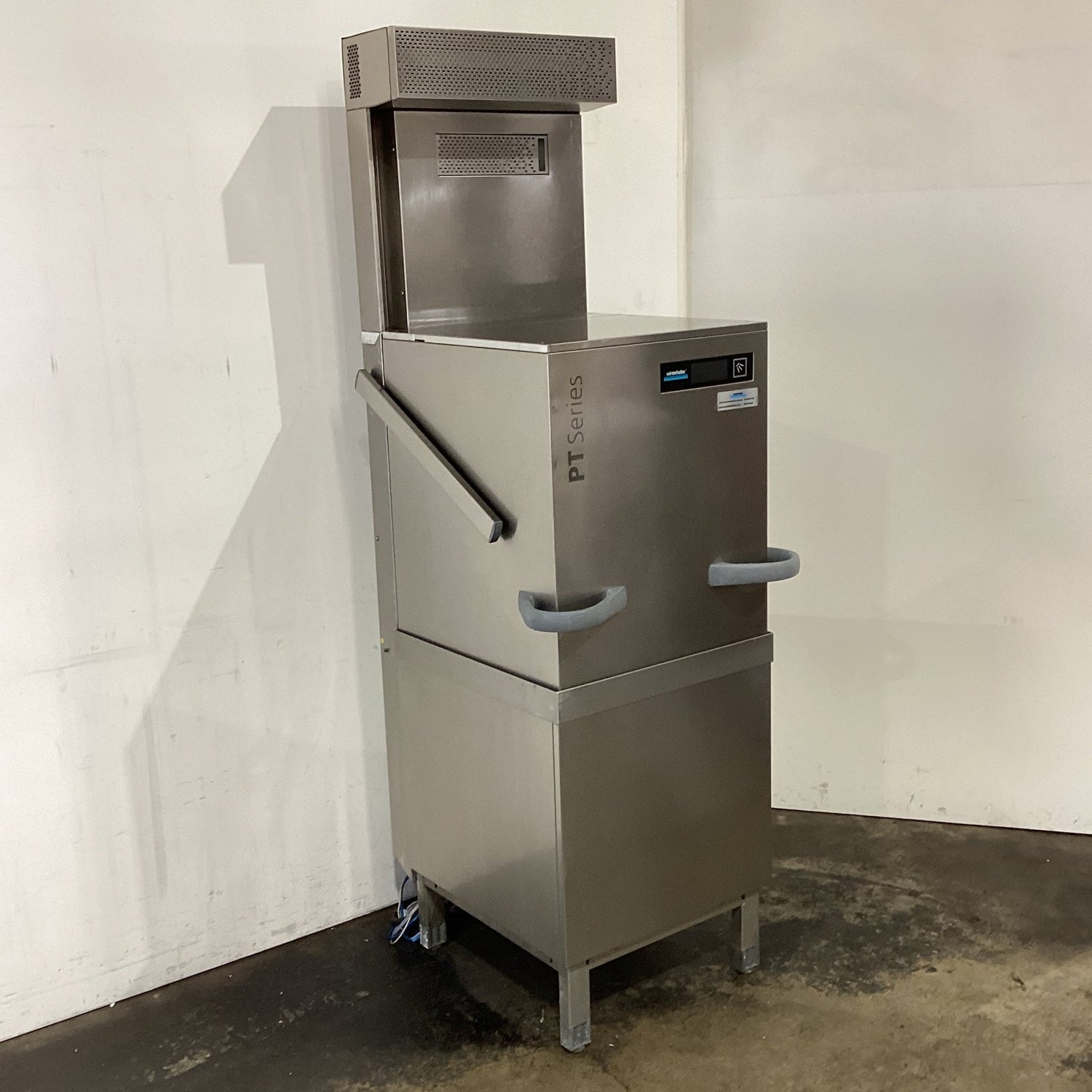 Pass Through Dishwasher. Features Detergent dispenser, Rinse aid dispenser, Dish rack, Glass rack, Cutlery holder, Pump drain, Adjustable feet, S/S finish, Scratches & dents, 20 amp 3 phase hard wired, 745mmW x 820mmD x 2280mmH, 137KG