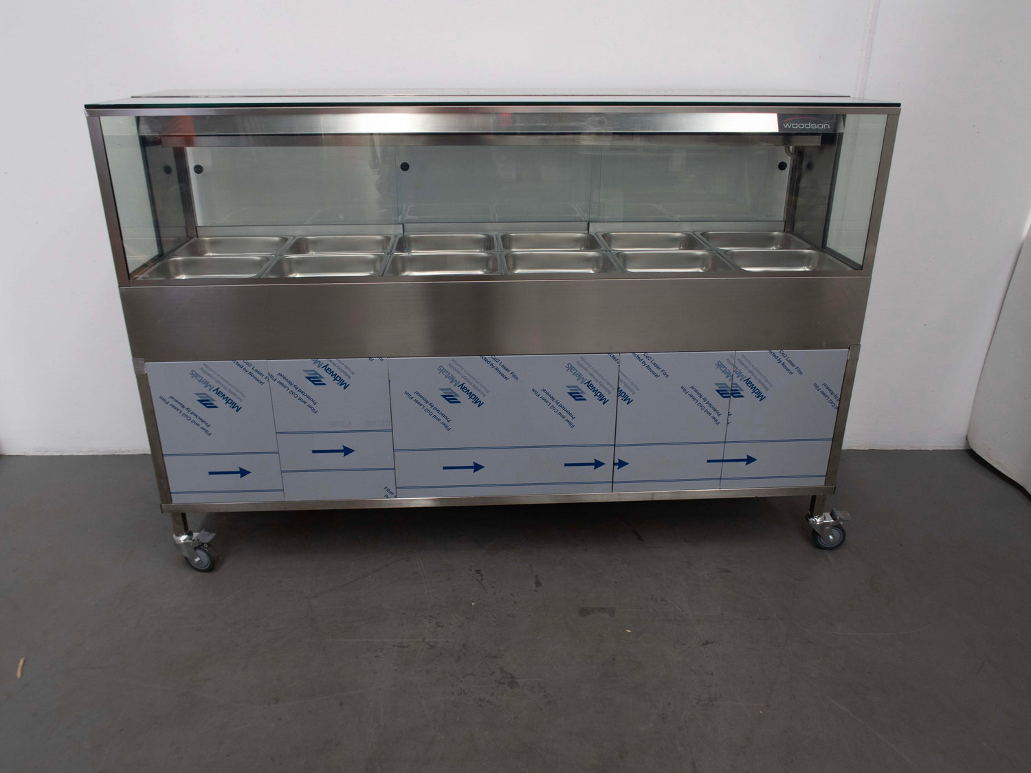 Cold Food Display On Trolley, Features Internal LED Lighting, 3 x Rear Sliding Glass Doors,12 x 1/2 GN Pans, Digital Temp Controls, On Castors, Climate Class Normal, S/S finish, Scratches & dents, 10 amp 1 phase, 2010mmW x 610mmD x 1340mmH, 295KG